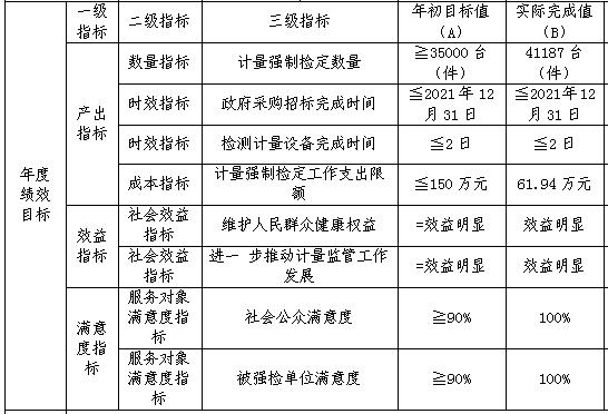 2021年计量强检与基础建设经费项目立项依据充分,项目保障措施有力,绩效目标合理且清晰明确。截止2021年12月31日,我中心已全面、按时完成各项绩效指标,并逐步提高计量器具强制检定覆盖率,解决应检末检、漏检等情况,使强制检定计量器具受检率稳步提升,符合2021年预期目标。同时,项目社会效益显著,服务对象满意度高。2021年,该项目绩效自评为88.26分。