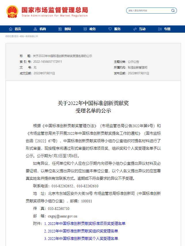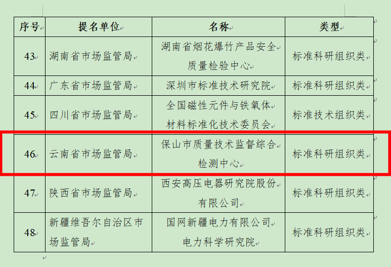 日前,国家市场监督管理总局官网公布《关于2022年中国标准创新贡献奖受理名单的公示》,其中,保山市质量技术监督综合检测中心成功入选2022年中国标准创新贡献奖组织奖受理名单。