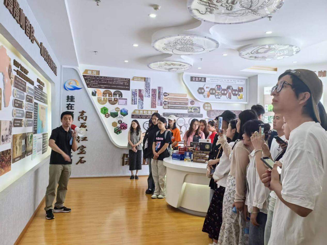 在食品和农产品检验检测中心专业人员的引领下,师生们先后参观了保山小粒咖啡展厅、理化实验室、微生物实验室及仪器分析实验室。各实验室负责人详细介绍了场所功能定位、核心检测设备及其在食品安全、产品质量控制中的关键作用。见习过程中,讲解人员还结合实验室功能布局,讲解了从“合同评审”到“样品科学流转”、“精准检测分析”、最终形成“权威检测报告”的食品检验全链条流程,将抽象标准转化为具象操作,深化了学生对专业理论应用于检验实践的理解。