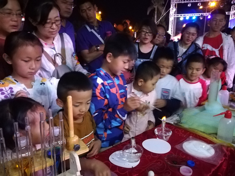 5月19日晚,保山五洲国际广场人头攒动、万人空巷,“科学之夜”活动如火如荼。在保山质检中心的活动阵地,“泡沫喷泉”“魔棒点灯”“火山喷发”“瓶吹气球”“可乐变雪碧”等实验魔力四射,激起了大家阵阵欢呼和好奇心,参与度爆棚,给广大市民特别是小朋友带来了一场化学科普盛宴。