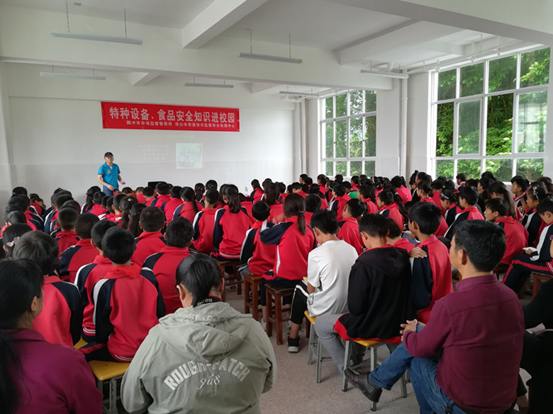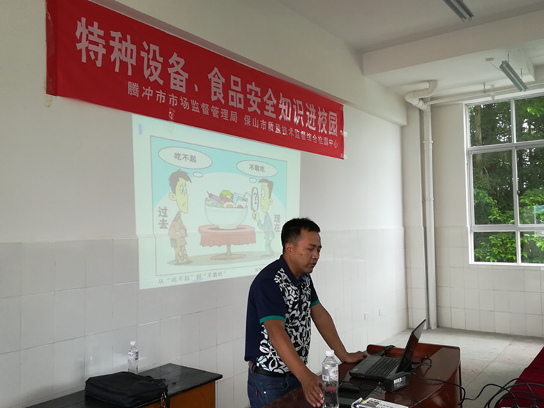 近日,保山质检中心联合腾冲巿场监管局到腾冲市朝阳小学开展特种设备安全及食品安全知识进校园活动。
