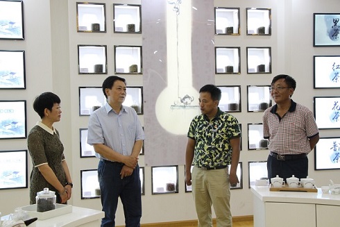 杨赛光一行参观了质检中心的党建文化走廊、茶叶咖啡展厅、大型仪器实验室,并在质检中心会议室进行座谈交流
