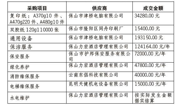 保山市质量技术监督综合检测中心4月16日~4月23日发布2021年货物类、物业管理类、印刷服务类项目及电梯维保、消防维保、水电维护项目采购公告,根据收到的报价情况,于5月7日组织询价小组进行了评审,现将评审结果公示如下: