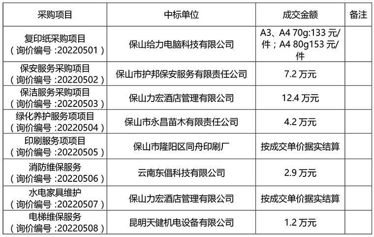 公示时间:2022年6月10日至2022年6月15日。 有关当事人对成交结果有异议的,可以在采购结果公告发布之日起3个工作日内以书面形式向保山市质量技术监督综合检测中心提出质疑,逾期将不予受理。投诉电话0875-2120814。