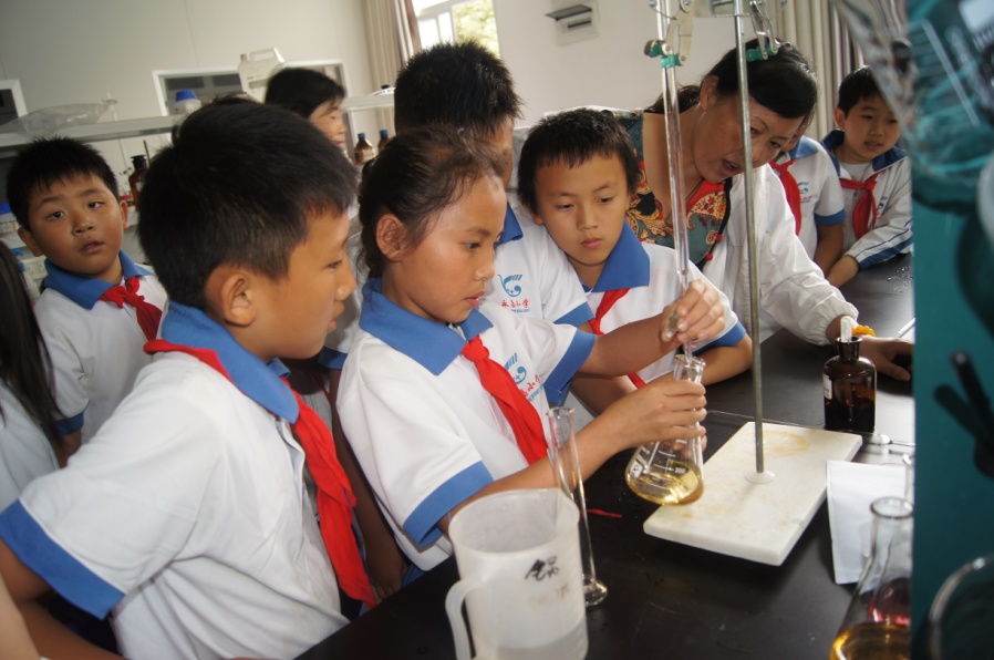 此次质量教育活动,保山中心技术人员首先带领同学们观看了特种设备安全和食品质量安全教育视频,使同学们对特种设备安全、食品安全有了一个初步的了解。接着带领同学们参观了计量检定室,讲解了身边的计量知识。随后来到了建材检验室,技术人员为同学们现场演示了用200kN的万能试验机对混凝土砖破坏试验,随着混凝土试块被瞬间压碎,同学们的惊呼声此起彼伏。接着,同学们来到了食品检测室,用充满好奇和疑惑的眼神观看了各种食品检测设备。最让同学们着迷的是现场试验——淀粉遇碘变蓝和酸碱中和滴定两个化学实验项目,同学们动手操作的积极性和主动性超乎大家的想象,原计划的30分钟延长到了45分钟,原计划6名学生动手操作最后演变成了全员参加,每位同学都亲手体验了现场试验的快乐。