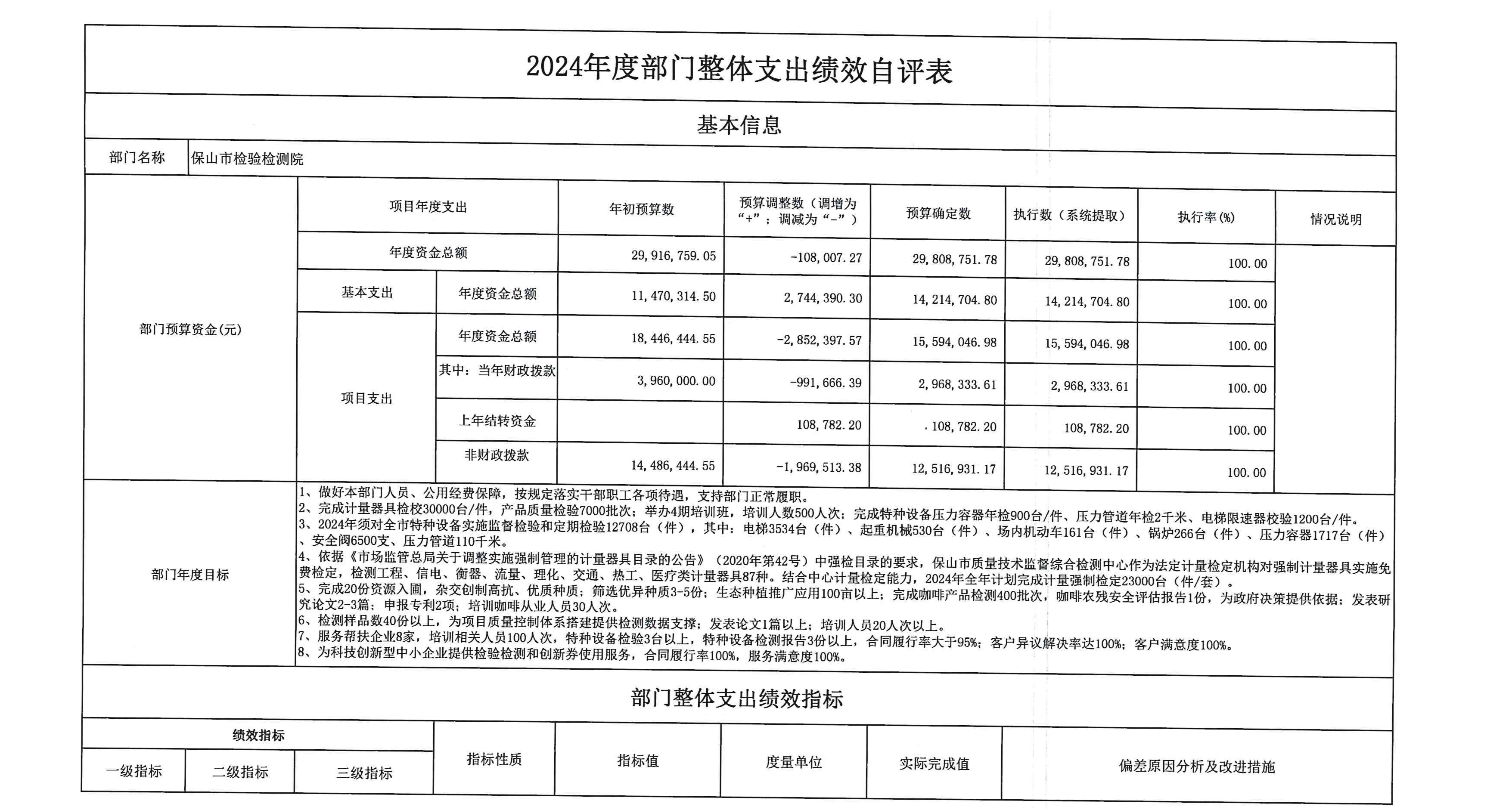 2024年度保山市检验检测院整体支出绩效自评及项目绩效自评