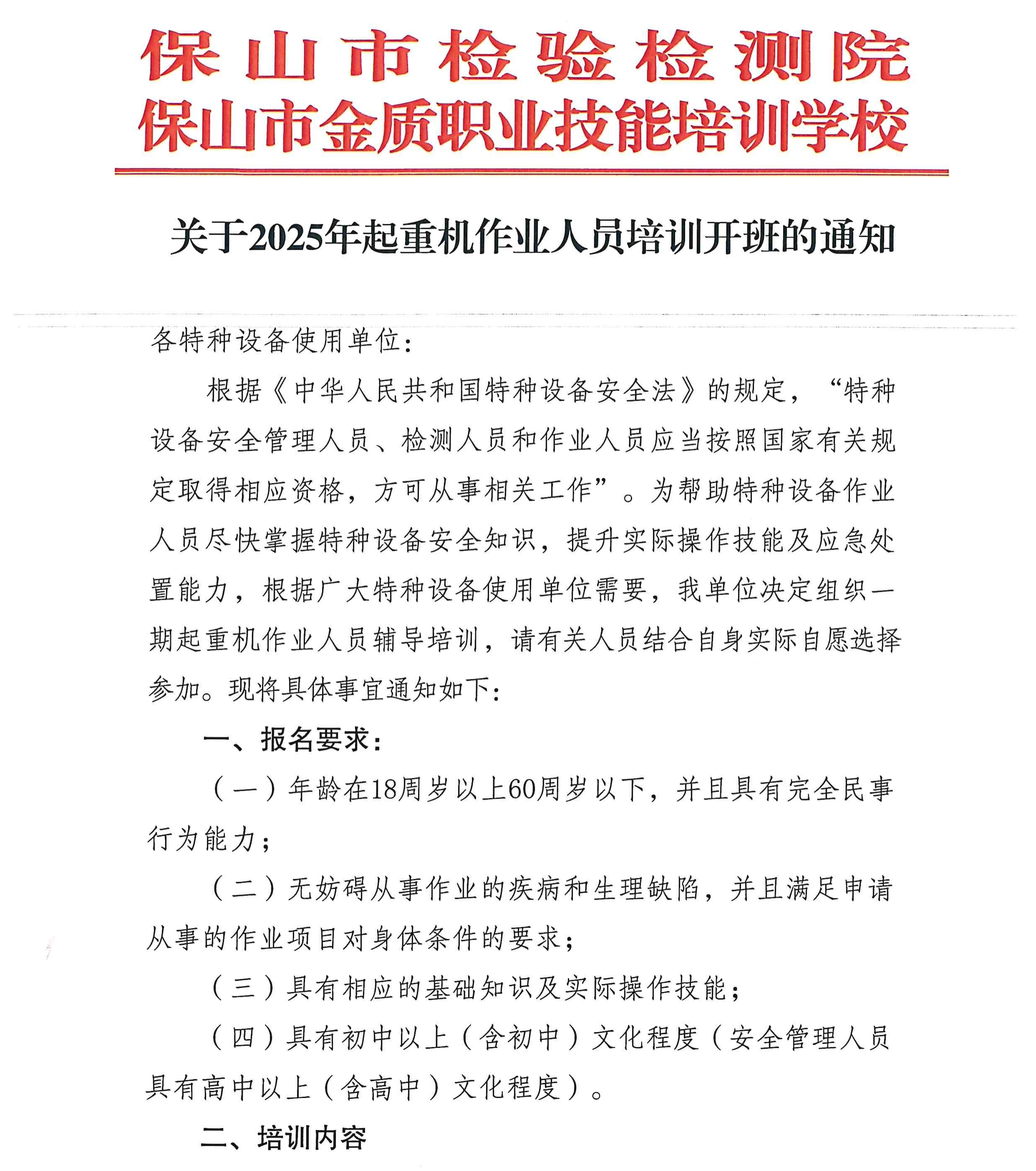 关于2025年起重机作业人员培训的通知