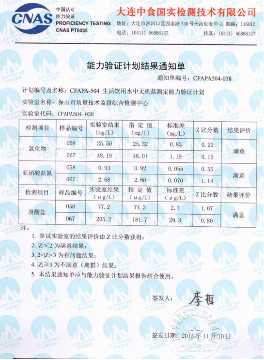 近日,保山质检中心收到国家认监委CNAS能力验证、测量审核结果报告,结果全部满意,所参加的营养成分、农药残留、真菌毒素、重金属、添加剂、微生物等关键领域的10个项目16个参数全部获满意结果,满意率100%,这充分说明保山质检中心的食品检测能力已达到国内同行业先进水平。