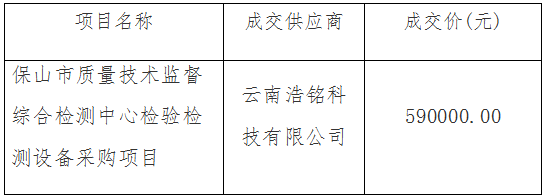 保山中招招标有限公司受保山市质量技术监督综合检测中心的委托,于2020年8月13日09:00对保山市质量技术监督综合检测中心检验检测设备采购项目进行竞争性谈判采购,编号为:BSZZ2020-58,现将评标结果公告如下: